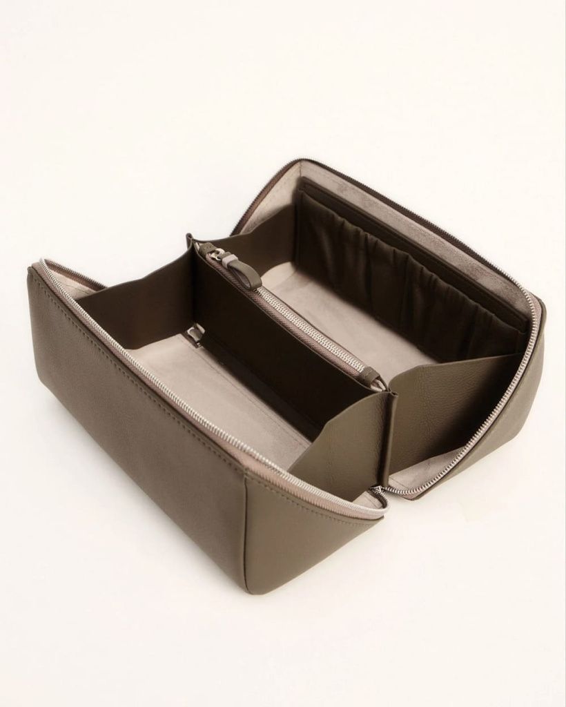 Съемная внутренняя часть позволяет вместить еще больше косметики. Также можно заменить вставку из алькантары на кожанную.