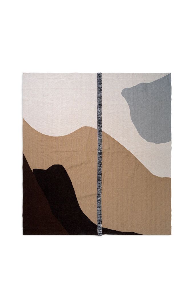 Мягкое хлопковое покрывало нежно-песчаных оттенков с абстрактным изображением нашей планеты с высоты птичьего полета соткано с использованием традиционной техники изготовления гобеленов, которая превращает это практичное изделие в произведение искусства. Он переплетен с тоновыми нитями и украшен бахромой по центру, что усиливает впечатление от ручной работы.