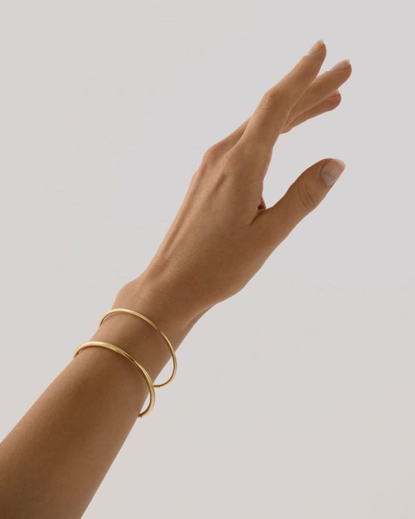 Этот браслет доступен в двух вариантах – тонком и среднем, которые хорошо сочетаются между собой. Открытый замок позволяет плотнее зафиксировать браслет на руке.